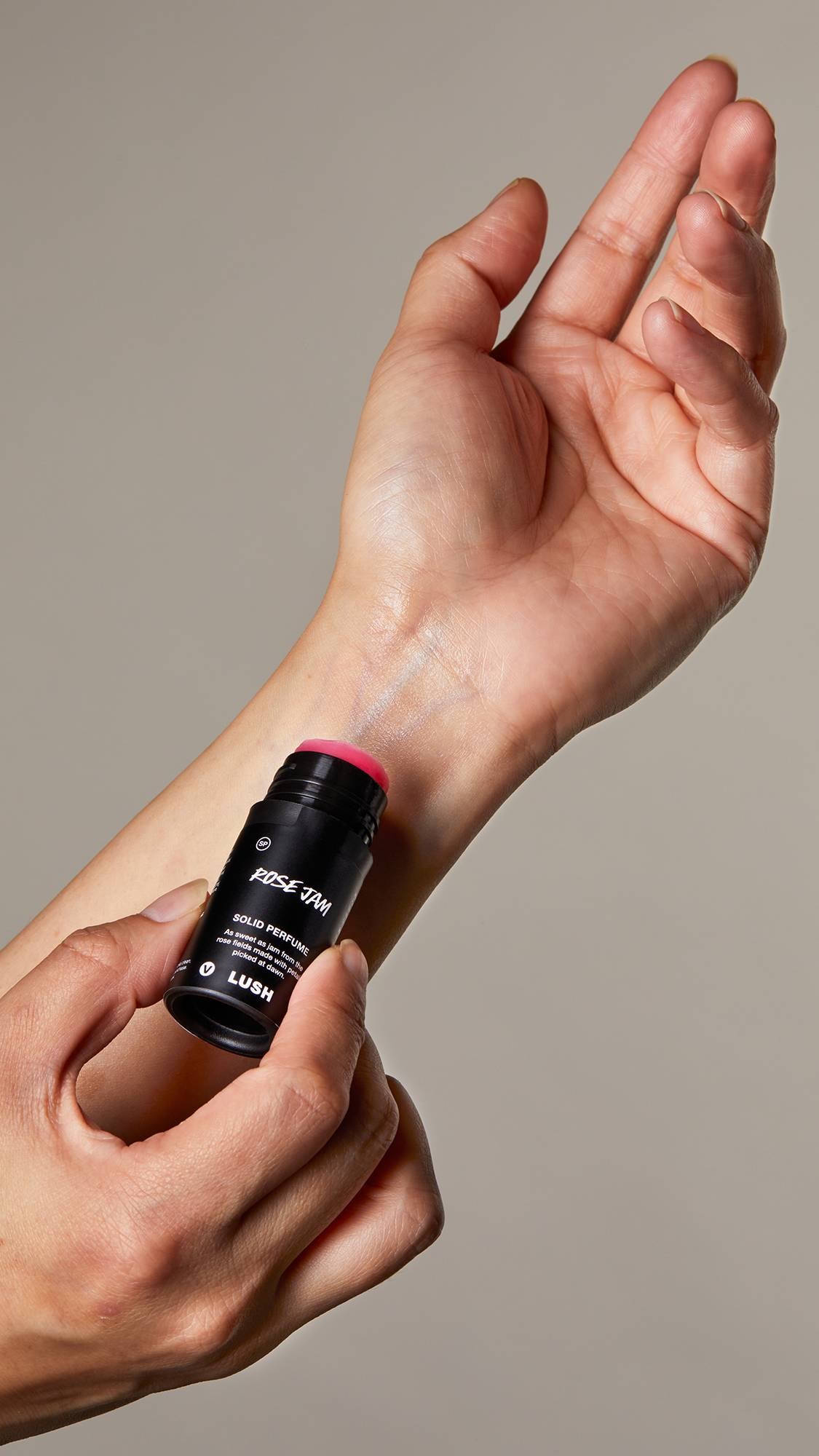 How to use: Push up gently, apply to your pulse points and massage in. Use your wrist to gently push the perfume back into its packaging.